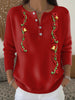 Kvinners julklokke Print Henley hals genserer