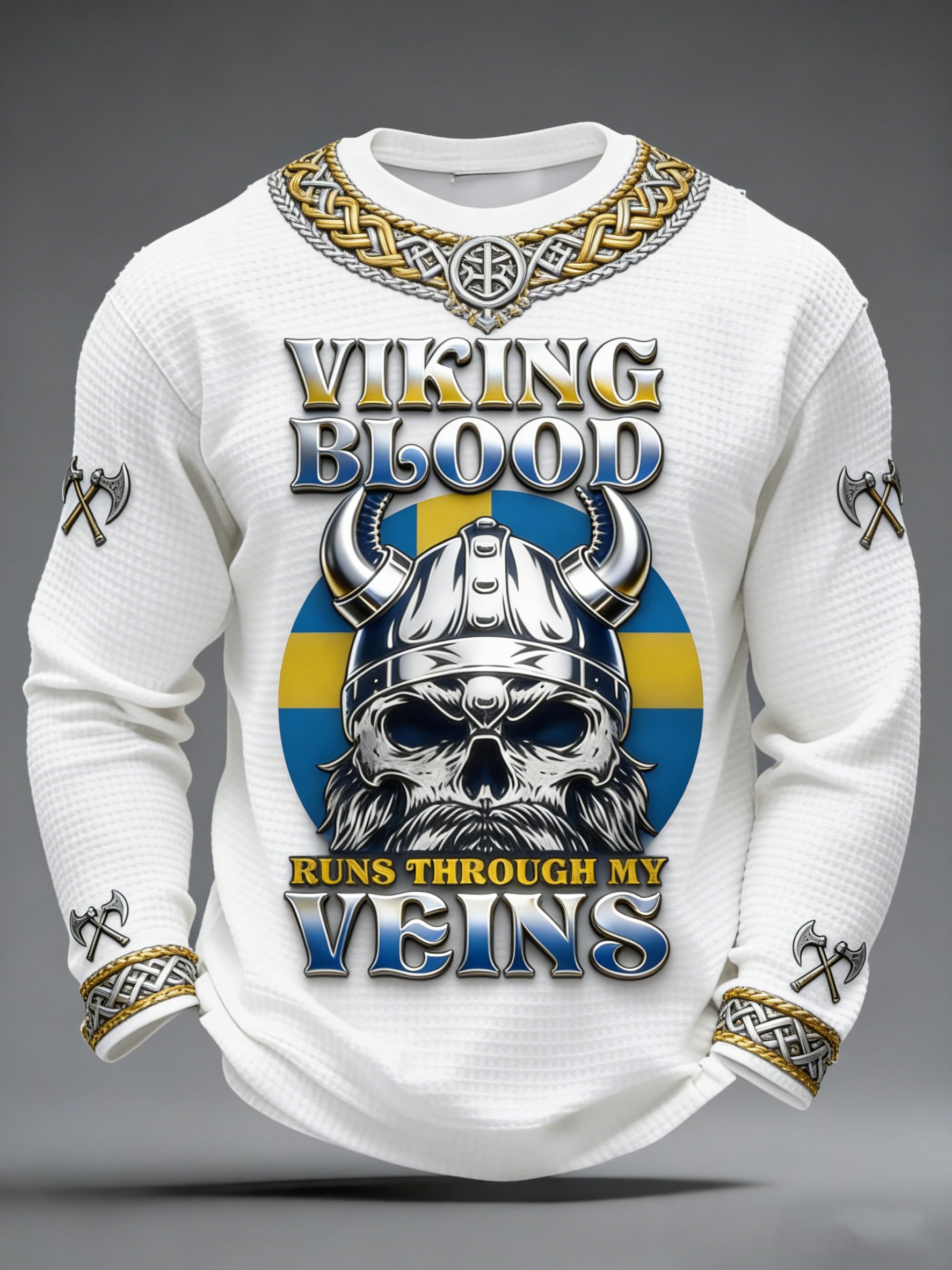 Herrtröja i vafelväv med svensk vikingamotiv och långa ärmar