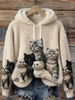 Kvinner søte katte kunst utskriver Casual Flannel Sweatshirt