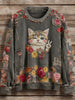 Kvinners Vintage lappeverk blomsterkatt kunst utskrive smykker