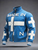 Mäns blå tillverkad i Finland Patchwork Design tryckt Casual Zip-Up Jacka