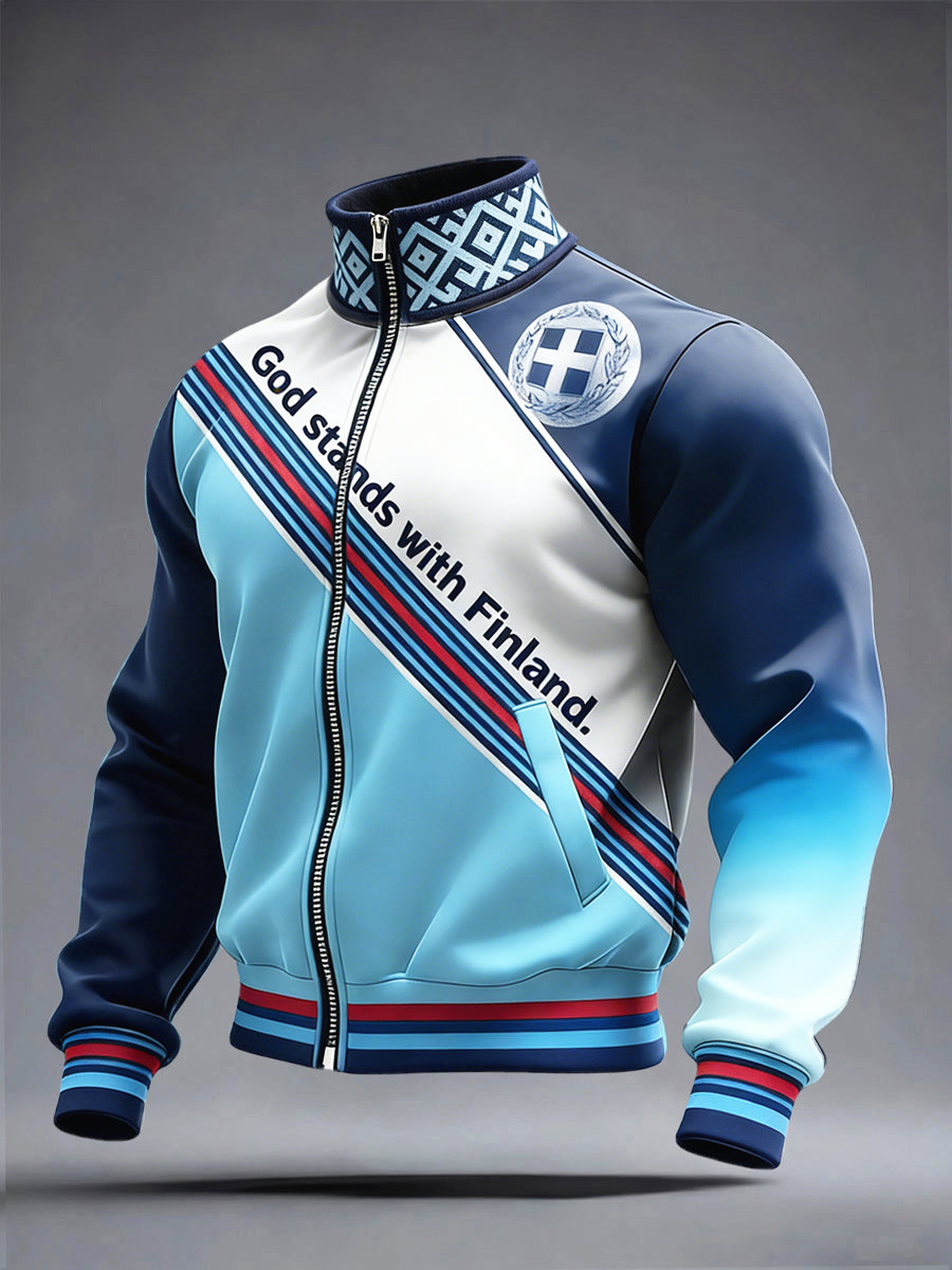 Mäns finska lappverk Print Stand Krage Zip Jacka
