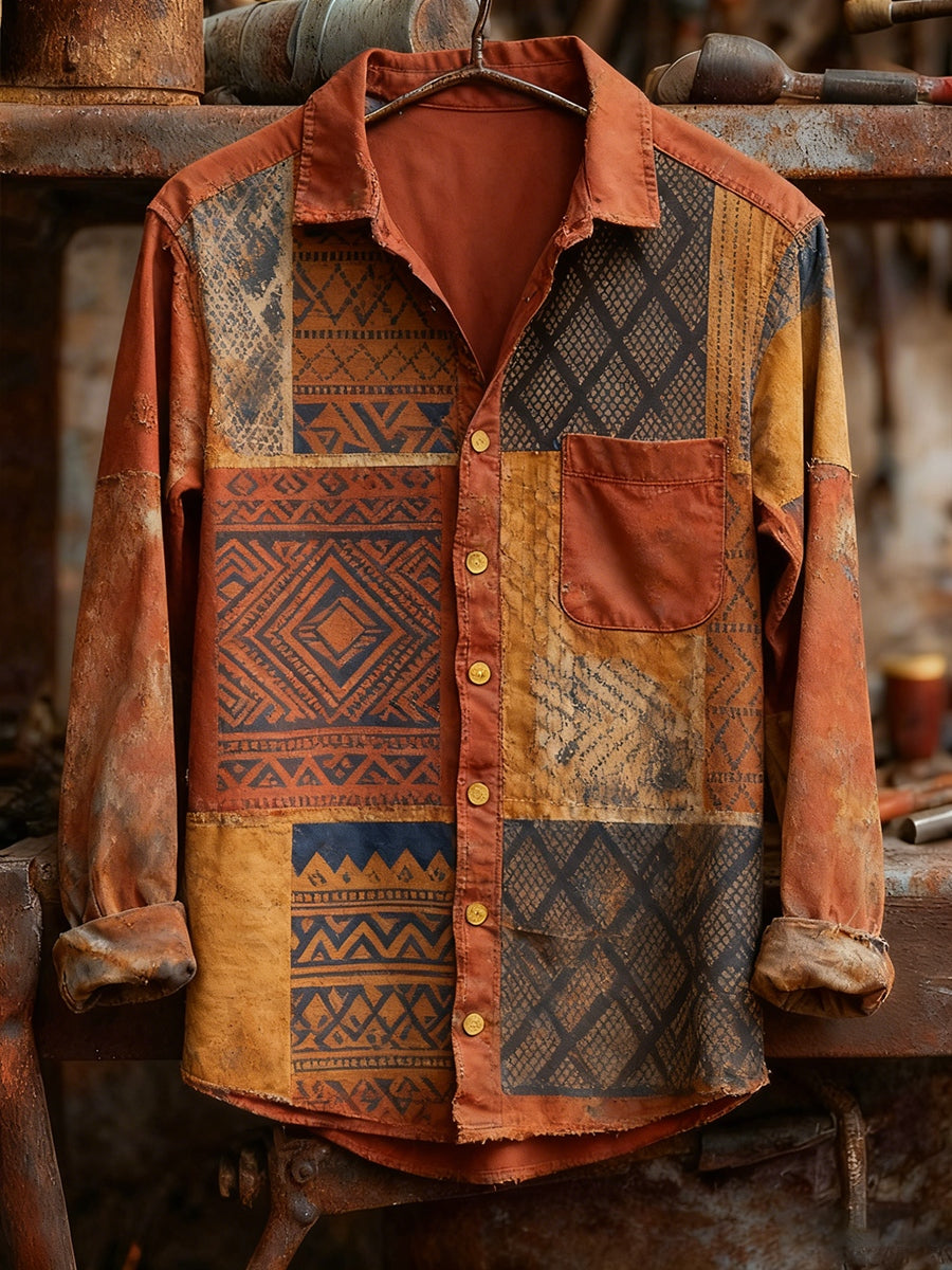 Menns Retro kunst skriv ut tilfeldig komfortabel langærme skjorte