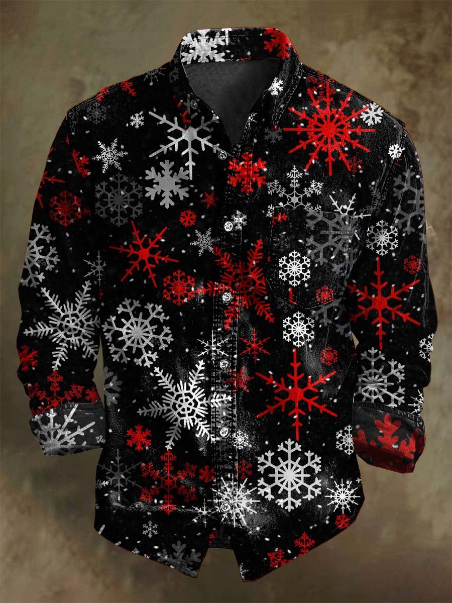 Uformell langermet skjorte med julesnøfnugg-mønster