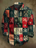 Vintage Plaid Skriv julen Casual Lang-Sleeve-Skjort